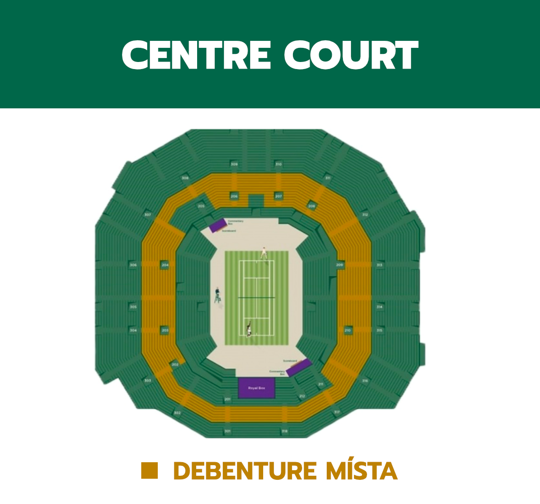S debenture vstupenkami máte garantovaný přístup k prémiovým místům na Centre Court nebo No. 1 Court, kde se odehrávají ty nejnapínavější a nejprestižnější zápasy Wimbledonu.